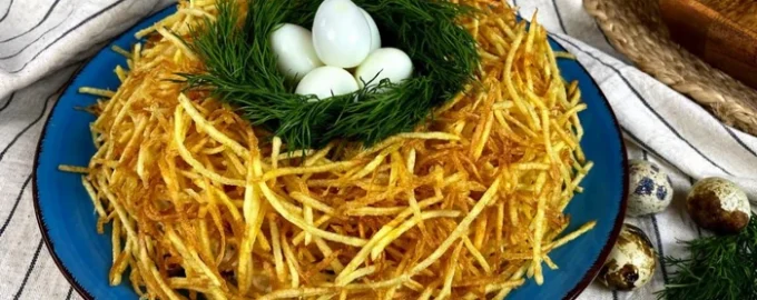 Tämä kaunis ja maukas salaatti sopii täydellisesti juhlapöytään Alkuperäinen salaatti ”Grouse’s Nest” tai ”Quail’